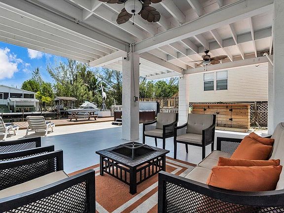 Beautiful waterfront island home with 60ft dock offering gentle breezes and quick boating access to the open bay within minutes. The perfect setting with the dock facing EAST. Great storage for all your gear in the boathouse or the newly built garage. On a spacious 60 x 100 lot, this 3/2 has a great open floor plan, cathedral ceiling, tiled floors, granite counters and stainless steel appliances. Offered fully furnished and just waiting for you. Main bathroom recently remodeled, large pantry & laundry room. Fully fenced with room to add a pool, fitted for an RV, several cars, boats and more. Enjoy the hot tub, The large covered entertainment area always has a great breeze. Outdoor summer kitchen to cook your catch. Equipped with an electric chair lift for those not able to climb stairs. This home is move-in ready and easy commute to the mainland. There is storage galore inside and out. Come check out all this property has to offer. Call for your appointment.