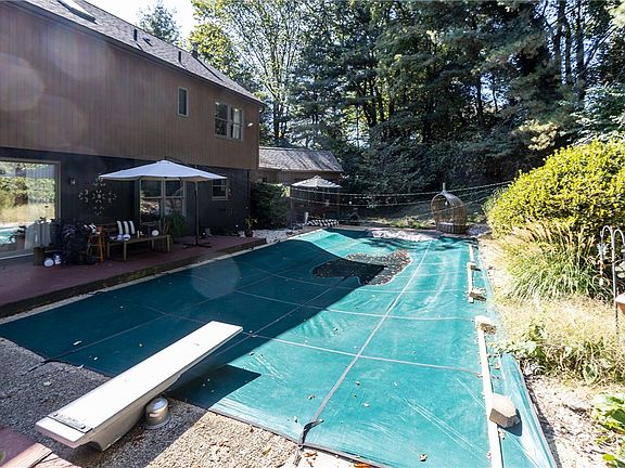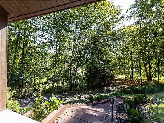 Beautifully updated home in the desirable Chapelview Farms community, situated on a private 1+ acre lot. This 4-bedroom residence blends comfort and sophistication, featuring a dramatic two-story foyer that opens to a sunken living room and family room joined by a two-sided stone fireplace. The kitchen offers granite countertops and a refreshed backsplash, while a newly created first-floor bedroom adds valuable flexibility for guests or a home office. The primary suite includes custom closet built-ins and a completely renovated bath (2025) with modern finishes. Nearly every surface has been improved with new paint, trim, lighting, and fixtures. Major updates include new HVAC, hot water tank, full insulation upgrade, and extensive landscaping. Enjoy summer days by the in-ground pool, enhanced with LED jets, a new pump, updated electrical, and freshly painted steps and diving board. A wraparound deck, fenced yard, and outdoor lighting complete this private, move-in-ready retreat.