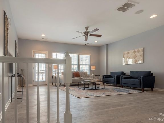 Amazing All Brick End Unit Within Walking Distance to Panther and Knights Games, Concerts, Restaurants plus Greenway and Dog Park just down the street...Everything Uptown Has To Offer! Updated and Complete w/ 2 Car Garage (very rare in Uptown!) Lovely and Large Dual Master Suites...one features ensuite bath double vanity and walk-in shower plus a large walk-in closet, Spacious Open Living and Dining Room with wonderful window exposure and french door to Balcony, Great Kitchen with Granite Countertops, white subway tile backsplash & new Stainless Steel Frig, stove and DW. Kitchen also has a pantry and a bayed breakfast area. Powder room on main level for guests. Lower level offers a wonderful flex space perfect for an office, media room, workout room, and has access to the double garage Lux Vinyl plank throughout except tile in baths. Washer and Dryer in laundry closet on bedroom level convey. Home is available fully furnished less a few pieces of art work and accessories.