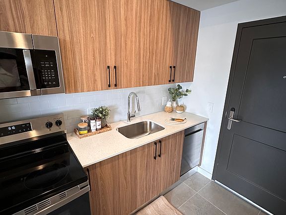 Step into modern living at its finest in this spacious apartment home, complete with high-end finishes and thoughtful design. Offering sleek stainless steel appliances, quartz countertops, expansive closets, and in-home washers and dryers. Enjoy the outdoors from your private patio or balcony, while elegant flooring and soaring ceilings enhance the comfort of your home.
