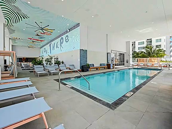 A cozy, light-filled studio to recharge or focus, with a kitchen ready for simple meals or your favorite recipe. The bathroom offers a rainfall shower, warmth, and reflection, making it a daily ritual. In-unit laundry adds a practical touch for longer stays or light travelers. Guest-loved amenities include a rooftop pool with skyline views and a Jacuzzi to relax after city adventures. The full gym is always open, allowing you to move at your own rhythm. Onsite dining options include Vela Miami Restaurant and Vela Sky Rooftop Lounge, along with Grab & Go for quick mornings or in-between meetings.