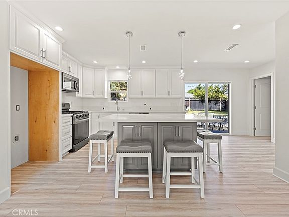 Location, location, location! Desirable one level home in the heart of Brea within walking distance to downtown Brea and the Brea Mall. 3 Bedroom, 2 bathroom home with 1107sqft, 146 sq ft addition in 2023 includes full bathroom, laundry permitted, and upgraded kitchen. Kitchen has elegant counter tops and a large island with plenty of storage. Beautiful hardwood and wood laminate throughout the home leads to three nice sized rooms and a recently remodeled bathroom. Newer HVAC system installed in 2017 and re-piping recently completed in 2023. Recessed lighting and fresh neutral paint throughout. Cool off in your crystal clear pool or relax on the elevated patio with plenty of space for seating to enjoy almost all year round. This home is conveniently located near Target, grocery store, civic center, post office and restaurants. Great Brea Schools.