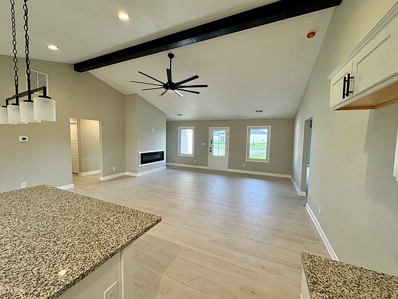 Discover this beautifully crafted full brick new construction ranch located in the desirable Fincastle Subdivision of Berea, Kentucky. Designed for style and function, this home features four bedrooms, two bathrooms, and an attached two-car garage. The open-concept layout and vaulted ceilings create a light, spacious feel perfect for everyday living and entertaining. The inviting living area features a modern electric fireplace that adds warmth and ambiance to the heart of the home. The kitchen showcases granite countertops, tile backsplash ,stainless steel appliances, and a practical design ideal for cooking and gathering. A spacious dining area flows seamlessly to the back deck, providing a relaxing spot to enjoy the outdoors or host family and friends. Conveniently located just minutes from the interstate, this home offers the best of Berea living peaceful surroundings with easy access to Richmond, Lexington, and the rest of Central Kentucky. Don't miss the opportunity to make this exceptional new home yours in the sought-after Fincastle community.