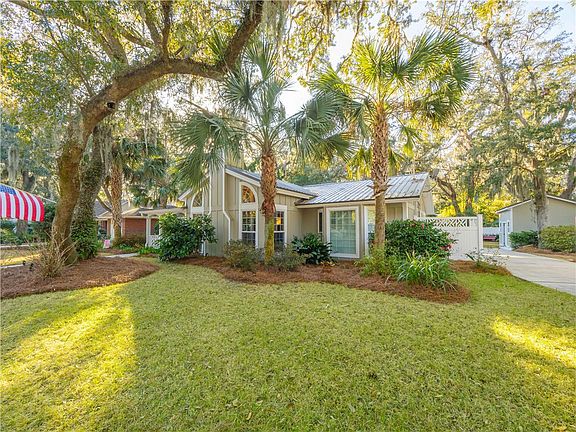 Welcome Home to this adorable Garden Beach Cottage located on the Southern Side of St Simons Island, just a little over a mile to the beach. Walk along one of the paver pathways to the front door. You will enter the living room and immediately notice the cozy gas fireplace with built in shelves. Four bedrooms and three bathrooms offer plenty of space and privacy. Next to the kitchen is a spacious laundry room and butler's pantry complete with beautiful cream colored cabinets and a large sink. The cream colored cabinets continue into the kitchen and are complimented with black granite on all the counters including the large kitchen island. The dining room features floor to ceiling windows looking into the backyard that is truly a garden lovers paradise. Next to the dining room is a 280-square foot Screened In Porch, large enough for a party! The porch also looks out into the fully fenced in backyard full of mature green and flowering plants, camellias, azaleas, hydrangeas, holly, live oak, and palm trees. This cottage would be perfect as a full-time residence, a vacation home, or lucrative investment. This quiet neighborhood has no rental restrictions and Golf Carts are legal to ride. Just imagine, beach life on St Simons Island in a cottage you LOVE.