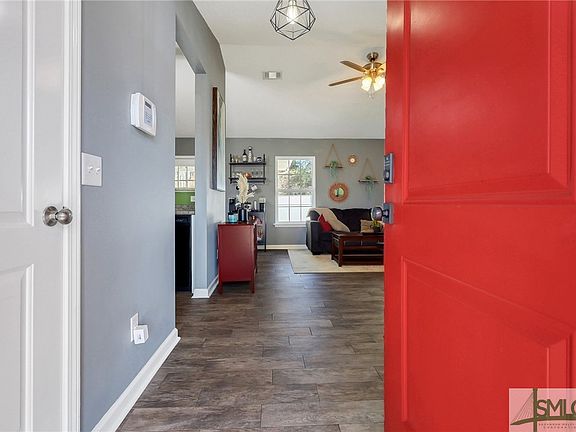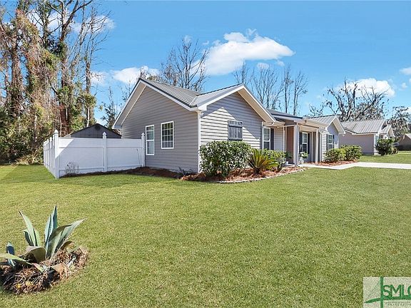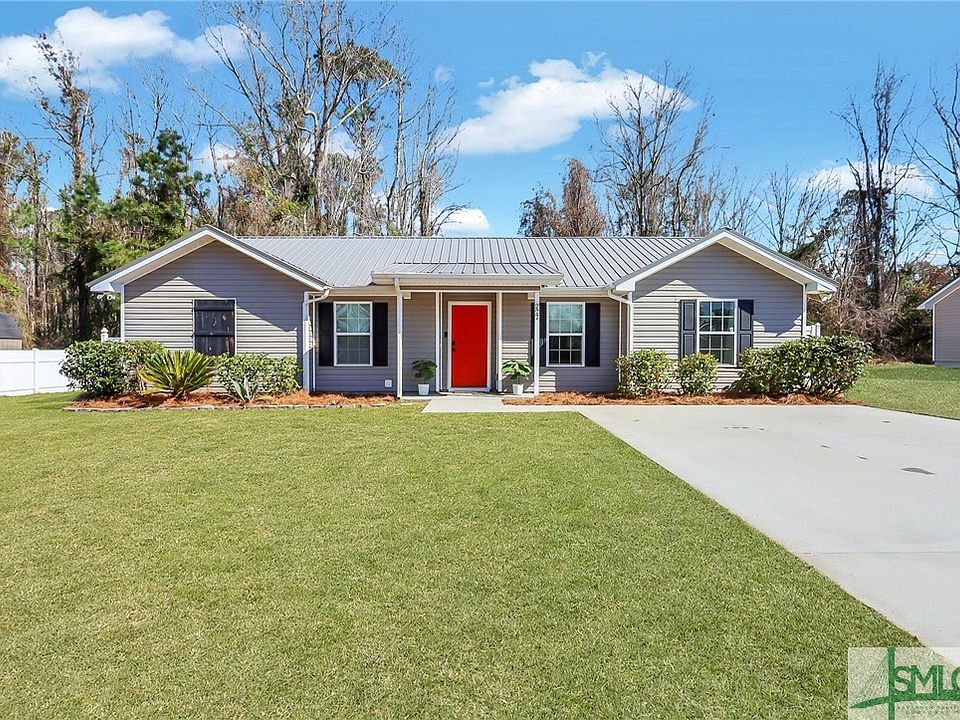 This 3 bedroom, 2 bathroom, well-maintained beauty has all the features you could want including a metal roof with gutters!!! Upon entering, you will notice the beautiful flooring (no carpet) throughout, cathedral ceilings, and plenty of natural light. The cozy living room opens into the kitchen with white cabinetry, breakfast bar and an eat-in kitchen area with french doors leading out to a covered patio. The primary bedroom has a walk-in closet, en-suite bathroom with double vanity, and oversized shower. The split floor plan has two more bedrooms, a large storage closet, and main bathroom with shower/bathtub combination. White vinyl privacy fencing surrounds the backyard and an 8x8 shed. The driveway has been upgraded with Sandkoat and the backyard covered patio with stamped overlay hand carved flagstone. So much included in this gem! Make this your home sweet home!