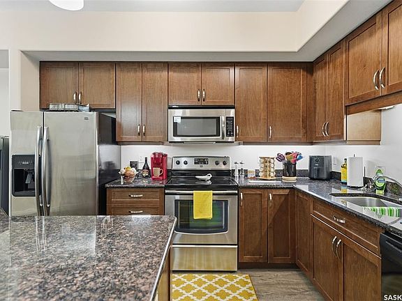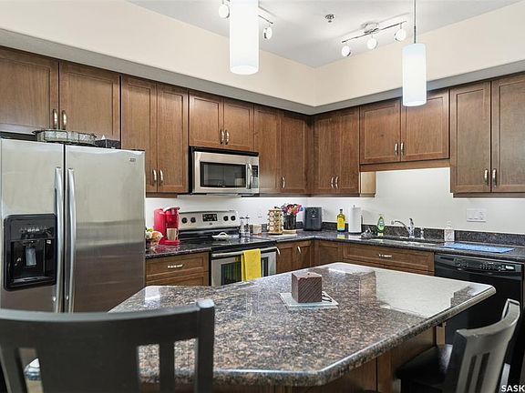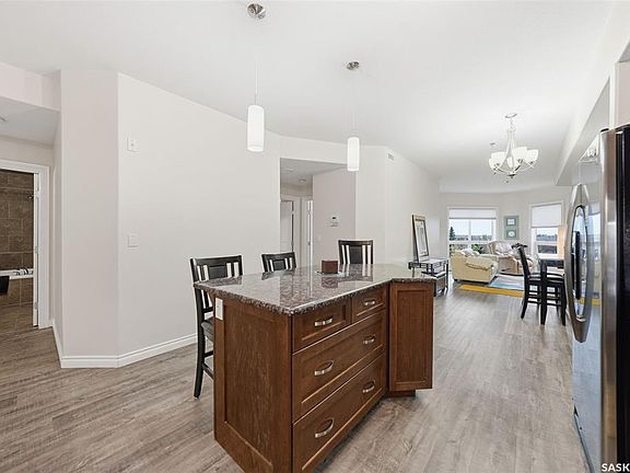 Welcome to 306-227 Pinehouse Drive!This bright, south-facing condo features a spacious entry, private laundry room, and an open-concept layout with fir tree and skyline views. The modern kitchen includes granite countertops, and a sit up island. Enjoy sunlit living spaces, a primary suite with walk-in closet and ensuite, a second bedroom, and a versatile den for a home office. Relax on your private balcony, and enjoy underground parking, storage, and great building amenities like in-floor heating, a recreation center, garden beds, and a gazebo. Located in Lawson Heights near the river, Meewasin Trail, shopping, and more. Move-in ready — book your showing today!