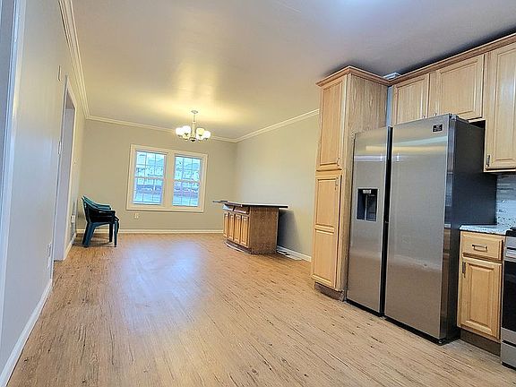 Kitchen with stainless appliances open to a Large dining area. Large Living space can accommodate a sectional and TV set, 1/2 Bathroom.