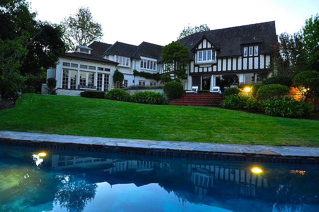 Set in HP behind the privacy of stately iron gates, this Tudor-style residence overlooks the legendary Wilshire Country Club and offers a breathtaking view of the golf course. Spanning over 10,000 sq.ft, this lushly appointed 3-story home boasts soaring ceilings, numerous French doors, wood inlay flrs and graceful wood carved fireplaces. The property features 6 spacious BR, full maid's quarters, 6 full and 3 half BA, library, office, formal DR, sitting rm, fam rm, grmt kitchen, wine cellar, and recreation rm--yet the pi~~ce de r~~sistance is the grand LR w/ dramatic walls of glass opening to an unobstructed view of the golf course. Beautiful grounds are designed for sophisticated outdoor entertaining w/multiple outdoor terraces and patios, pool, spa, serene fountains and gardens, and winding path leading to the golf course. Large motor court w/3-car garage welcomes guests to this resort style estate tucked away from the rest of the city. Live in complete privacy w/verdant golf course as your backdrop.