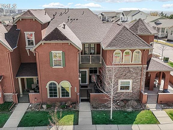 Welcome to your dream home, where luxury meets comfort and convenience. This beautifully designed residence features tall ceilings and luxury vinyl flooring throughout the main level, offering a modern and inviting feel. The gourmet kitchen is a chef’s delight, boasting high-end appliances, abundant cabinet space, and elegant under-cabinet lighting. Upstairs, a versatile loft space awaits, complete with built-in shelving, a large desk, and surround sound—perfect for a home office, media room, or creative studio. The primary suite is a true retreat with a 5-piece en suite bath, walk-in closet, and custom shelving. One of the carpeted rooms includes a walkout to a private terrace, offering majestic views of Pikes Peak. A carpeted guest bedroom with an adjacent full bath ensures comfort and privacy for visitors. The large 2-car garage is equipped with built-in workbenches—ideal for hobbyists and extra storage. Additional features include an in-home humidifier and thoughtfully curated spaces throughout. Located in a vibrant community that offers a community center, mail room, exercise room, and summer concerts, you’ll enjoy a strong sense of camaraderie among neighbors. Nature lovers will appreciate nearby serene trails, including Bear Creek Park, and the historic charm of Old Colorado City is just minutes away. Iconic destinations like Garden of the Gods and Pikes Peak offer endless exploration, while downtown Colorado Springs provides shopping, dining, and entertainment galore. This is luxury living at its finest—with scenic beauty, modern amenities, and community warmth. Don’t miss your chance to make this exceptional property your home. Schedule your showing today!