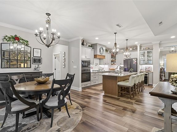 Outstanding Single Family Ranch! True one-level, low-maintenance living awaits in this custom-built home with 3 bedrooms, 2 bathrooms and a governor drive leading to the 3 car garage. The interior boasts a large vaulted great room, custom moldings, a built in spice cabinet, custom range hood, and a pot filler in the kitchen. Lower kitchen cabinets are equipped with pull-out drawers, and all cabinetry is soft-close. Other upgrades include under-cabinet lighting, a beverage fridge, and custom window treatments. All closets have custom shelving, and all lighting fixtures and outlets have been upgraded. Outside, enjoy a beautifully landscaped, fenced-in yard with additional landscape lighting, a custom Amish-built shed, and a custom waterfall on a GFI with a timer. A 10-zone irrigation system with a separate water meter and a whole-house surge protector are also included. The property features a semi-finished attic. Opt in or out of grass cutting and snow removal with HOA. A rare beauty!