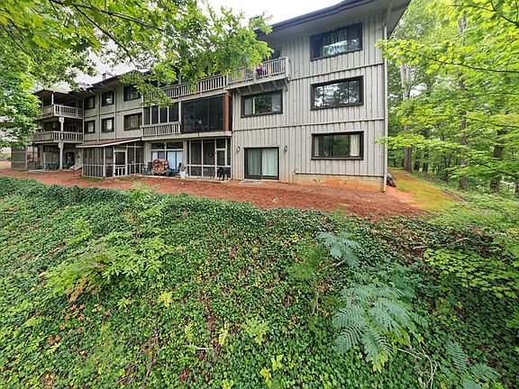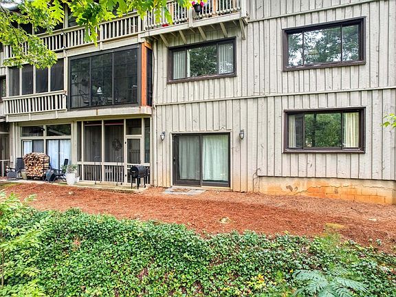 NEW PRICE!!! Welcome to your dream golf course condo! This charming corner unit boasts three bedrooms and two bathrooms, featuring a desirable split bedroom floor plan for added privacy. The sunken living room invites an open feel with its see-through railing, complemented by a cozy wood-burning fireplace. Double pocket doors lead into the spacious primary bedroom, while the guest bedrooms share a large walk-in tile shower and one includes a luxurious jetted tub. Enjoy serene views from your screened-in porch, framed by trees for added seclusion. With an exterior storage closet perfect for a workshop, plus community pool access and optional resort amenities, this condo offers the perfect blend of comfort and convenience, all just moments from town. Don't miss out on this slice of paradise!
