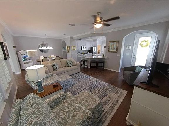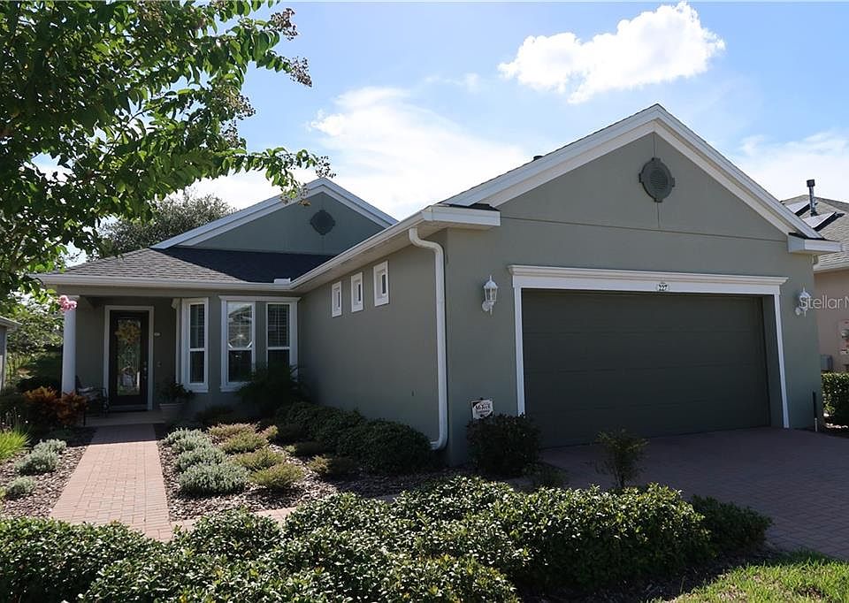 See the DOLLHOUSE VIRTUAL TOUR and CLUBHOUSE VIDEO TOUR. This house is truly remarkable and needs to be seen! Welcome to the "island" at Trilogy! A 24/7 guard gated 55+ over the top community that exceeds even the highest expectations! The Magnolia House, a 57,000 sf club resort, delivers a level of living which delivers jaw dropping responses. This meticulously maintained move in ready GARDENIA MODEL by Shea Homes in Trilogy Orlando has it all. This Shea home has full solar package which will cost you around $10 a month for electricity! It is a 2 bed 2 bath with a den and has no rear neighbors! As you walk through the entry you will see the main areas are wrapped in a rich hardwood floor. The home has been painted in a beautiful light gray throughout, has added crown molding and all of the light fixtures and faucets have been upgraded. As you move into the kitchen you will see upgrades galore, from the custom gray cabinetry with upgraded handles wrapped in a custom granite countertop with added upper and lower lighting, the gorgeous glass backsplash, upgraded STAINLESS CONVECTION CUSTOM SLIDE IN STOVE, the STAINLESS FRENCH DOOR FRIDGE and who can forget about the FARMERS SINK! The owners chose to have the floor plan bumped out 4 feet from Shea homes to make the 2nd bedroom, laundry and pantry much larger than normal. The den has been upgraded with a custom murphy bed that has a built in desk that easily hides away and custom shelves to adorn it with your favorite momentos. As you walk into the large master retreat you feel at ease. The master bath has been upgraded to a frameless shower door, custom vertical glass tile, dual undermount sinks wrapped in a beautiful granite to set the stage. The rear patio has been extended to a massive 25 x 13 under roof for all of your entertaining needs! Come see this gorgeous home today as it won't last long!