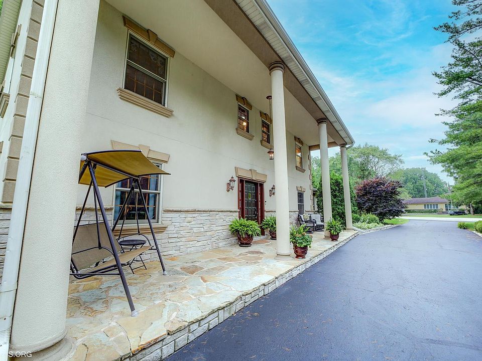 Nestled in a serene and sought-after Inverness neighborhood, this beautifully reimagined residence offers nearly 2,800 square feet of timeless elegance and modern comfort. Originally rebuilt in 2005 and meticulously maintained, this 4-bedroom, 2.5-bathroom home is filled with charm, thoughtful updates, and room to grow. Step inside to discover a welcoming layout featuring gleaming hardwood floors throughout, a gorgeous updated kitchen with granite countertops and newer appliances (2023 refrigerator, 2020 dishwasher), and a cozy wood-burning fireplace in the family room. The first floor also features an extra office space, perfect for working from home, and an elegant, formal dining room. The spacious family room offers large windows overlooking the beautiful lot and provides direct access to the stone patio with an outdoor wood-burning fireplace-ideal for entertaining or simply relaxing in your private backyard. There's also a charming bench that doubles as extra storage, adding both convenience and charm. The primary suite is a true retreat, offering an updated bathroom, a private balcony/patio, and generous closet space. You'll love the heated floors in the upstairs bathroom and basement, adding comfort during cooler months. All bathrooms have been tastefully updated, and the finished basement adds valuable living space for recreation, office, or guest needs. Other recent updates include: Refinished hardwood floors (main level 2020), Stone patio and outdoor fireplace (2010), Upstairs hardwood throughout, Beautiful elevation (stone & stucco) done in 2005, Air conditioning and compressor (2022), Pressure tank (2024),New water filtration system (2022), Water heater (2012), Sump pump with battery backup and ejector pump (laundry/basement), Spacious 2-car garage. Located on a quiet street in prestigious Inverness, this home is within walking distance to a swimming pool, and also close to top-rated schools, forest preserves, and major expressways-blending privacy and convenience perfectly. Come see it today and envision your future here.