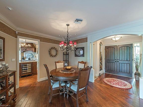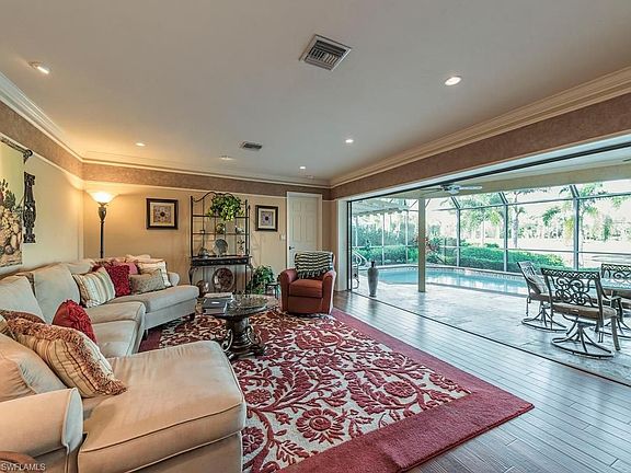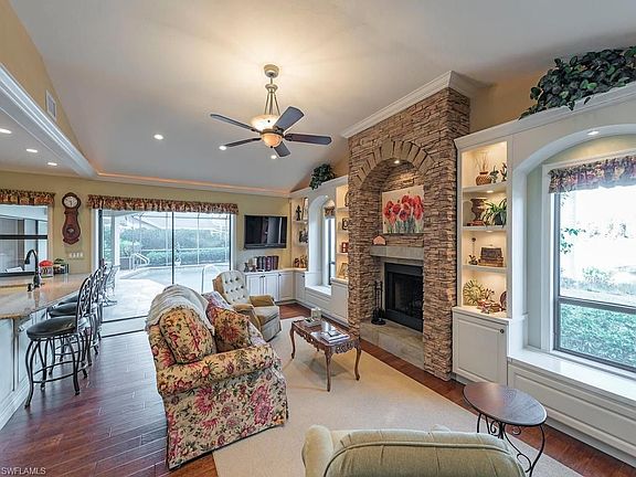 H.11214 $25,000 price improvement. We listened to the feedback and made adjustments. From the moment you enter the pavered driveway, glance at the stonework on the garage to the moment you step through the double entry door, you know this home is special. You step into the lovely formal living room - dining room which opens to the pool and lanai with its outdoor kitchen. The home has been completely remodeled and done so with fine quality workmanship and materials. The custom kitchen is extraordinary and includes a large breakfast bar, center island with built in wine cooler and top of the line appliances. It is adjoined to the family room with a custom designed fireplace. All bathrooms have been redone with quality granite and tile. New roof in 2014. You can open up the disappearing sliders to enjoy outdoor living, and enjoy the lake view and golf course view in the distance. Landscaping has been upgraded and landscape lights have been installed in both front and back of home. Lovely at night! Close to downtown Naples and the area beaches.