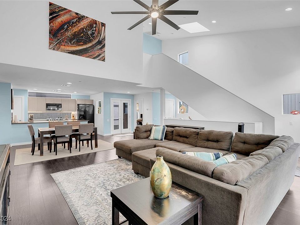 "Fully Furnished" Modern multi level loft located in Fabulous Downtown Las Vegas in a gated community. Beginning with it's open modern architecture to it's high ceilings featuring skylights, and it's concrete flooring throughout the first level this loft is unparalleled. First level hosts a secondary bedroom with his and hers closets along with a guest bathroom with a spacious walk in shower and backyard access. In the second level you will find an open living concept with balcony access and an guest room. Kitchen features a beautiful granite counter top, like new cabinets and stainless steel appliances. In the third level you will find a loft, and a spacious primary bedroom hosting a stunning walk in shower with dual shower heads.