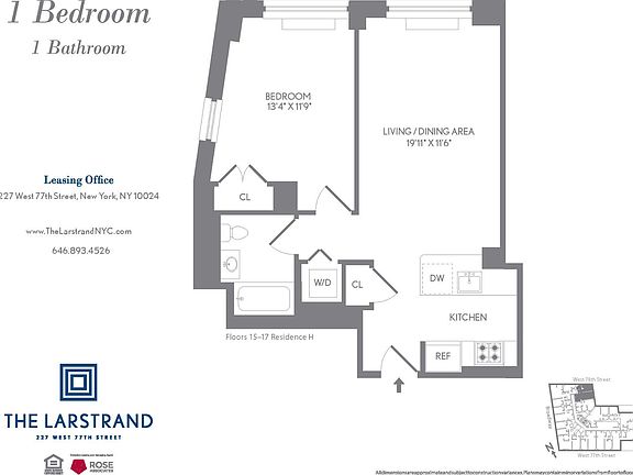 Located on the corner of 77th and Broadway, The Larstrand offers luxury living in the Upper West Side. From exceptional amenities to a landscaped rooftop lounge for entertaining, you can find it all here. The Larstrand residences feature designer finishes and chef-grade appliances, as well as built-in TVs in master bathrooms and refrigerators with LCD displays.