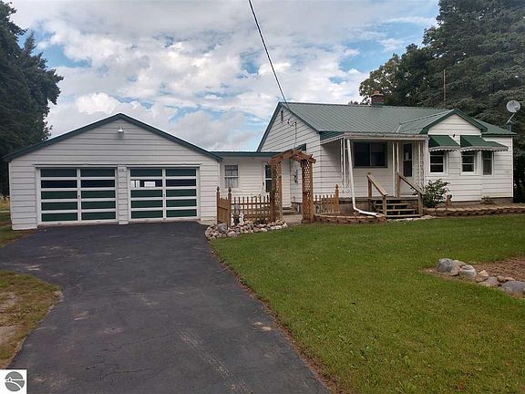 Neat and clean 2 bedroom, 1 bath home sitting on nearly 2 acres! This setting features an expansive yard with frontage and driveways on two roads, a 2 car attached garage and a two utility sheds. The home is move-in ready with a plenty of a cabinet space in the kitchen, a living room with tasteful knotty pine, newer carpet in the bedrooms, newer flooring in kitchen, and a full basement with a finished family room and a room that could be a 3rd bedroom or office area. Other features include a metal roof, newer water heater, storage area in the basement, a high, insulated attic that could be used for more storage and a cute covered porch for outside enjoyment!