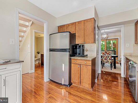 Right in the heart of Reston! This remarkable 4BD/2.5BA, 3-level townhome enjoys lush wooded views, along with gorgeous hardwood floors (on 2 levels), and a bright and airy, 2-story foyer. From the foyer, the updated kitchen sits to your right. Beautiful maple cabinets, granite countertops, stainless steel appliances, dedicated pantry, and breakfast nook highlight this kitchen. Further into the heart of the home, a sunlit open living and dining room make entertaining a seamless experience. Access the spacious wood deck through sliding glass doors from the dining room. Barbeque late into the summer nights while hosting loved ones! A convenient powder room also on the main level by the foyer. Upstairs, the spacious primary bedroom features access to the covered balcony overlooking trees and greenspace. 2 other well-sized bedrooms located on the top floor. The bedroom adjacent to the primary bedroom can also access the covered balcony through sliding glass doors. Excellent natural light - great for a home office! A full-hall bathroom with tub serves the top floor. Convenient linen closet located across from the bathroom. On the lower level, a fully finished walk-out basement includes a recreation room that could serve as a fourth bedroom! A full bathroom, storage room, and laundry/utility room with full-sized W/D complete the lower level. From the rec room, step outside onto the covered porch and fenced-in backyard, where you can unwind in privacy. This home features numerous modern amenities and updates including recessed lighting, HVAC (July 2022), HWH (July 2021), W/D (March 2020). Deck boards and rails replaced in 2022, exterior painted in 2021. Great community amenities to enjoy the fresh air and outdoors (walking paths, playground, and basketball courts). Cool off at the local pool, a short 6-minute walk away. 2 assigned parking spaces. Situated in Reston, this home offers convenient access to a host of amenities including Reston Community Center, Reston Town Center, a newly opened Wegmans, and Reston National Golf Course just minutes away. Convenient commuter access to Dulles Toll Rd (VA-267), Fairfax County Parkway, and Reston Parkway, all less than 5 minutes away! Hop on the silver line at Wiehle-Reston Metro Station or catch a flight at Dulles (IAD) both less than a 10 min drive away. 30 minutes to downtown DC. Don’t miss the opportunity to own this sunlit townhome!