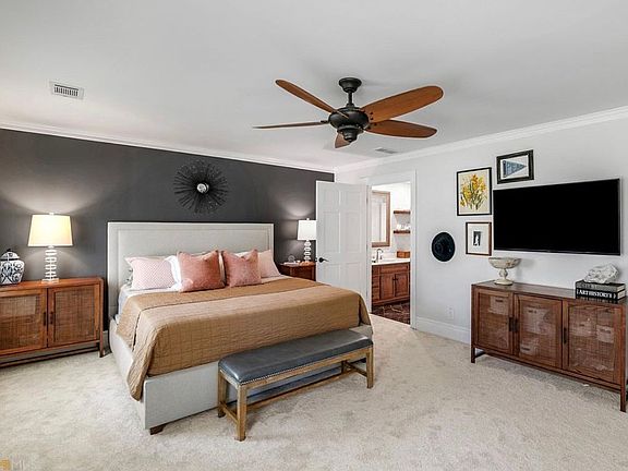 Experience timeless elegance on the largest private lake in Georgia. This beautifully updated 4-bedroom, 3.5-bath Georgian-style home sits on a picturesque, tree-lined street within the exclusive Lake Spivey community.