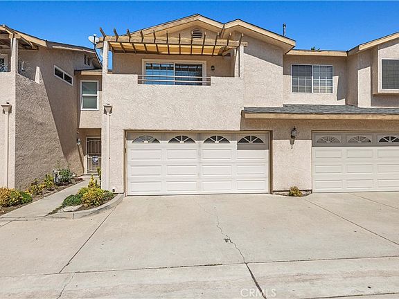 Welcome to this beautifully updated townhouse tucked inside a quiet gated community of just 15 units in Pomona. Offering 1,299 sq ft of living space, this home features 3 bedrooms and 2.5 bathrooms with a bright, open layout. The spacious living room is highlighted by vaulted ceilings, skylights, and a charming gas fireplace, flowing effortlessly to a private patio ideal for outdoor dining or relaxing. The kitchen provides generous cabinet space and a breakfast bar that opens to the dining area. A convenient powder room is located on the main floor for guests. Laminate flooring runs throughout the main living areas and upstairs hallway, with cozy carpet in the primary bedroom and one guest room for added comfort, while the second guest room features matching laminate flooring. Upstairs, the spacious primary suite includes a walk-in closet and a private balcony retreat, perfect for enjoying morning coffee or evening sunsets. A two car garage with side door access and a block walled yard with side gate add convenience. Residents enjoy a community pool with covered seating and restrooms. Located near the 10, 210, 71, 57, and 60 freeways, this property offers easy access to shopping, dining, and entertainment. Ideal as a primary residence or investment, this home is ready for you.