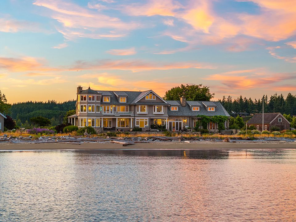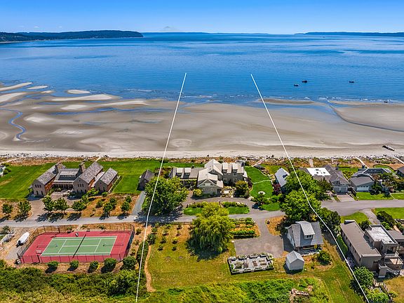 Discover a landmark estate—one of the Pacific Northwest’s truly iconic coastal homes—set on one of Washington's most beloved beaches. Bathed in golden southern light and framed by postcard views of Mt Rainier, this coastal sanctuary is a Robert Maloney original—an architectural love letter to the Hamptons, steeped in East Coast style and grounded in Northwest sensibility. Thanks to the unique geography of Useless Bay, the home opens to 224' of pristine low-bank waterfront with nearly 1,000' of sugar sand beach at low tide, scattered with sand dollars. Designed as a place for generations to gather and unwind, the property is privately tucked within a gated enclave of four estates and located just 10 minutes from Useless Bay Golf & Country Club.