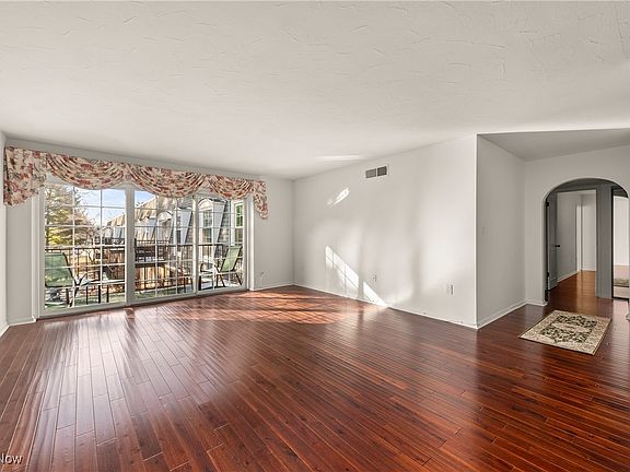 Welcome to this lovely condo in the desirable Riviera West building in Rocky River. Featuring (2) bedrooms (1.5) baths and a large balcony patio with wooded views. Fabulous brand -new solid hardwood floors flow through the main living areas. The newly painted, spacious living and dining room are flooded in light with southern exposure and newer sliders to the patio balcony. The nicely equipped eat-in kitchen offers newer appliances and easily flows to the formal dining room for entertaining. Enjoy the oversized owner’s suite, boasting a walk-in closet, a charming French alcove window and an in-suite full bath with an updated walk-in shower. The second bedroom is just as wonderful, offering a walk-in closet, wood flooring, in-suite half bath and a wall of built-ins. Convenient in-suite laundry. Updates include, new hardwood flooring December 2024, newly painted LR & DR December 2024, new AC 2024, HWT 2017, electric panel 2017, newer sliders and bedroom window, updated master shower, newer kitchen appliances. Elevator is steps from the unit! Secure underground heated garage with an assigned parking spot and a car wash bay! Riviera West is a meticulously maintained condo building in the heart of Rocky River with onsite maintenance. Immediate access to many conveniences and eateries, including Tri-City Park, offering pickleball, tennis and more! Just move right in and enjoy easy living! Do not miss out on this fabulous opportunity!