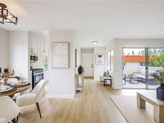 This is a gorgeous recently renovated 2 bed 1 bath upstairs, end unit with a 1 car garage and an assigned parking space. This home boast, new luxury vinyl plank flooring, new paint, new windows, new blinds, new baseboards, new appliances, new hardware through out, new vanity, mirror, hardware and faucet in the bath. It's got a great open floorplan with it's own laundry, dining area, tons of natural light that all lead out to a private patio, perfect for entertaining. The complex itself is located close the freeway, parks and has a community pool, spa and basket ball court. Don't miss