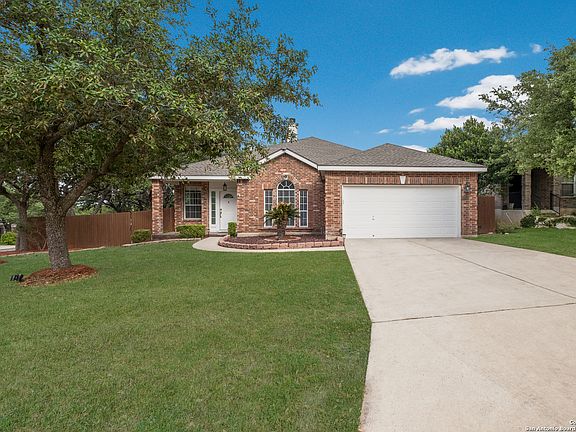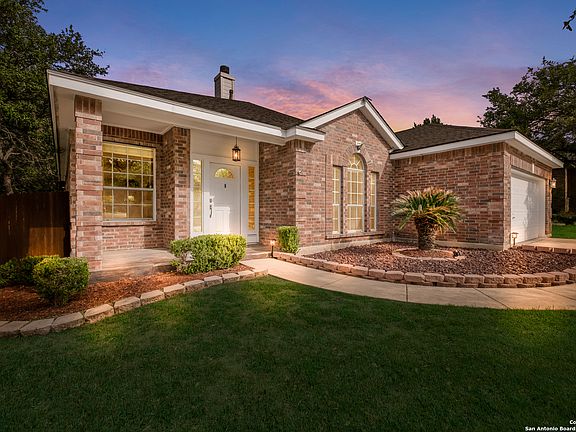 Welcome to this exquisite single-story residence situated on an oversized corner lot in the serene and highly desired neighborhood of Promontory Pointe. This beautifully maintained home boasts brand new flooring throughout and fresh interior paint, creating a bright and inviting atmosphere. The open floor plan is filled with natural light. The kitchen offers granite countertops, stainless steel appliances and a breakfast bar, combining style and practicality for everyday living. A generously sized home office with elegant French doors provides privacy and sophistication, ideal for remote work, study, or creative space. The primary suite offers a full bath with a garden tub, separate walk-in shower, and double vanities, walk in oversized closet space, offering a peaceful retreat at the end of the day. Additional highlights include a large backyard workshop, perfect for hobbies or projects. Mature trees, and the oversized cover extended patio is ideal for outdoor gatherings and relaxing evenings. Enjoy access to community amenities such as a swimming pool, playground, and sports courts. Conveniently located near top rated NEISD schools, this home truly has it all! Schedule your tour today and discover everything this stunning property has to offer!