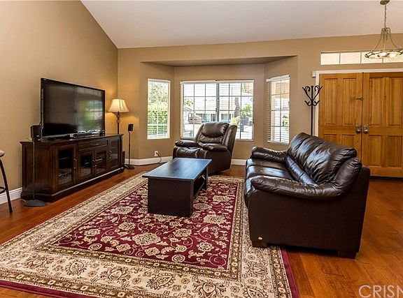 Gorgeous Saugus Pool Home located at the end of a Cul-De-Sac! This bright and open floor plan features 4 spacious bedrooms, 3 full baths and 2 car garage along with an extra wide driveway! Multiple upgrades include updated kitchen, hardwood & tile flooring, designer paint through out, vaulted ceilings, natural exposed beams and fresh front & backyard landscape! Amazing award winning schools and with close proximity to shops, restaurants and more! This is an entertainers backyard with a covered patio, hardscape, grass, palm trees, sparkling pool and spa.. No HOA and No Mello Roos in this neighborhood