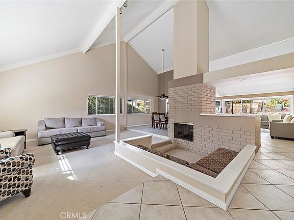 As you step onto the property, you're greeted by a spacious front lawn and a two-car driveway. The allure of this home is immediate as the double door entry welcomes you into an airy, high-ceiling living room adorned with a captivating fireplace, creating a cozy ambiance for gatherings or quiet evenings.