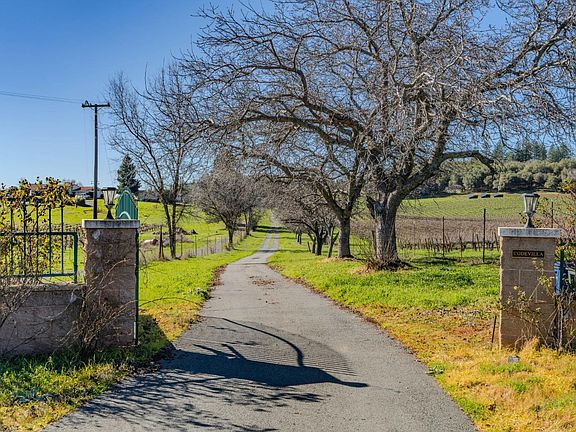 Experience wine country living on this spectacular 45.61-acre estate northeast of Plymouth, the heart of Amador County. This beautifully designed 2,492 sq ft, 3 bedroom, 3 bath custom home showcases stunning arched architecture, soaring open windows, and views of lush landscaping, vineyards, and rolling hills. Three separate porches amplify the private views, and high-quality brick and masonry construction, plus hardwood floors throughout, further distinguish the home. The property's vineyard features 19 acres of Zinfandel, Sauvignon Blanc, Nebbiolo, Touriga, and Tinta Cao grapes, some of which have produced award-winning reserve wines for local wineries since the late 1970s. The property also two wells, mature walnut trees, a tranquil irrigation pond, and a sparkling lap pool with a built-in hot tub - with a new, top quality heating system - surrounded by vibrant roses and multiple producing fruit trees, including Meyer lemons, oranges, figs, kumquats, and pomegranates. Inside, the primary king suite includes a spa-like bathroom with a private sauna for ultimate relaxation. The estate also includes a spacious barn divided into a high-bay shop area and separate, apartment-style living quarters with 1 full bathroom and 1 spacious bedroom with a wood-burning stove. The space is perfect for guests, or multigenerational living, but has been a source of steady, long-term rental income for the owners for years. Offered fully furnished, this turnkey property has income-producing potential while delivering an unmatched lifestyle in a serene, picturesque setting. This is more than a home; it's a retreat, a vineyard, and an investment all in one.