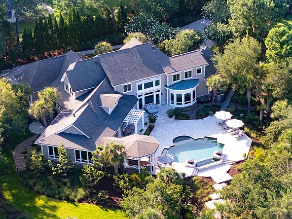 Welcome to 2271 Captain Waring Court, an exceptional 6,300 square foot custom estate, perfectly situated at the end of a private cul-de-sac, featuring a striking circular driveway that invites you home. Totally renovated in 2012 by renowned architect Glick Boehm and meticulously constructed by Cook Bonner Ebeling Builders with interior design provided by Beverly Bohan owner of Haute Design every detail of this home boasts elegant features, refined finishes and exquisite craftsmanship. As you step inside, you are greeted by a two-story grand foyer accentuated by a breathtaking spiral staircase that sets the tone for the elegance that lies within. The entire home features luxurious, engineered French country walnut floors ensuring stability and easy maintenance. The main floor showcasesa private executive office with exquisite burled walnut paneling and a stunning X-pattern walnut ceiling providing a sophisticated workspace. The expansive living room features floor-to-ceiling windows that offer breathtaking views of the custom pool and private dock, seamlessly blending indoor and outdoor living. An elegant fireplace enhances the ambiance creating a warm and inviting atmosphere. Built-in museum arched cabinets provide aesthetic appeal and are perfect for displaying your treasured collectibles. The extra-large chef's kitchen looks onto the 5th green of the Dunes West golf course. This is a true culinary masterpiece equipped with granite counters and top-of-the-line appliances to include Wolf double ovens, Wolf 48-inch 6 burner range top with grill, two dishwashers and Sub Zero refrigerator/freezer and wine cooler. Custom millwork and under and over cabinet lighting, as well as a generous walk-in pantry complete this grand cooking and entertaining space. The open dining room and family room which also features a custom fireplace, boasts 8-inch beamed coffered ceilings with 4-inch crown moldings and flow effortlessly into a sophisticated game room, perfect for hosting gatherings. A built-in wet bar with a kegerator, custom cabinetry and two cooling drawers will keep your beverages chilled and ready for entertaining From here, simply open the doors and step outside to discover a stunning custom cabana equipped with an extensive outdoor kitchen - ideal for hosting memorable low country boils. The resort-style custom pool, complete with a spa and multiple entertaining areas, offers direct access to your private dock featuring a 10,000 lb. boat lift - perfect for waterfront activities and enjoying the beautiful surroundings. Also, not to be missed is the outdoor firepit... the best place to enjoy watching a southern sunset! The luxurious primary suite serves as a private retreat, featuring a relaxing sitting area, inviting bay windows, and a spacious walk-in closet and secondary laundry room. This serene space also offers an office area and an elegantly appointed bath adorned with Calcutta gold marble, honed limestone floors, dual vanities and an oversized shower and Toto washlet toilet for the ultimate spa-like experience. A generous guest suite and a full bath complete this level ensuring comfort for visitors. The main level also includes a convenient powder room and laundry room complete with additional workspace, ensuring functionality and ease for everyday living. A convenient back staircase provides easy access to the second floor, enhancing the home's functional design. Should you want a private space to unwind there is a lovely side porch also looking directly onto the golf course. Ascend to the second floor where you will find two additional bedroom suites each with ensuite baths and custom walk-in closets. Also located on this level is an in-home luxury gym with water views, along with an additional versatile room that can serve as a children's playroom or office. A utility room housing the home security system provides easy access to the oversized walk-in attic, as well as pull down attic for all your storage needs. A three-car garage with an epoxy floor is equipped with custom shelving offering ample storage solutions. This remarkable home is nestled within a gated community and situated on Dunes West golf course and Toomer Creek, showcases extensive landscaping and designer outdoor lighting that enhances your home's allure day and night. Elevate your lifestyle in this unparalleled residence where luxury, comfort, and serenity converge. Your dream home awaits.
