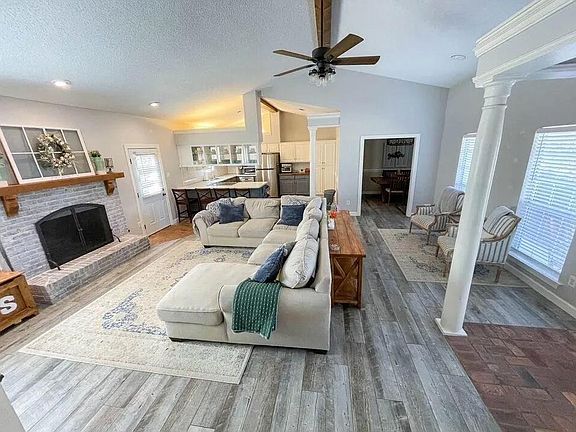 This is a truly beautiful home located in West Mobile, in the sought after neighborhood, Carrington Place. This 2,159 sq ft. bright and open home has 4 bedrooms, and 2.5 bathrooms. The tile floors in this home are a work of art in themselves but the whole house is a must see! Large Master suite with double walk-in closets, separate vanities, and a garden tub. The kitchen opens into the family room with a breakfast bar. A newly-built spacious back deck with covered outdoor living space to enjoy the large, shaded backyard. Backyard has plenty of space for family to play and a firepit to enjoy with family and friends. Features: --MBR easily fits King size bed --MBA Double vanity and walk in closets --Garden tub --Double car garage --Automatic driveway gate --Boat parking area with water and electricity --Private spacious fenced back yard with no house directly behind it. --New large deck in 2023 --Fire pit --8X10 storage shed --Close to Walmart, Target and schools.