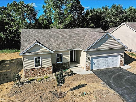 It’s finally here, the one you’ve been waiting for! Welcome home to this all-new Cortland construction set within a highly desirable, up-and-coming local development. This custom-built home is set to stun with its breathtaking visuals and high-quality materials that are found throughout the sprawling, three-bedroom design. Both brick and stone accent leads you inside a deep-set foyer peels away to reveal both a secondary hallway to the guest bedrooms and the main entrance to a remarkable great room. The open layout delights with its tall ceilings and window-lined walls that provide instant, scenic views that provide plenty of natural privacy. A gas fireplace sits before a towering mantle while opposite the room, a must-see kitchen with a large center island provides polished stone countertops and a rich, tiled backsplash that pairs masterfully with the decorative hanging lights. Enjoy a meal in the illustrious formal dining room and its instant covered rear patio access. Down the side hall, first floor laundry is found across from a lovely full bath as the pair of carpeted guest bedrooms provide lush carpets and ample closet space. The master suite is located opposite the great room, instantly captivating with an oversized footprint, tall windows and an elaborate master bath that includes two vanities, a private commode, walk-in closet and a breathtaking glass and tile shower that sits centerpiece. Down below, a full basement allows for easy dry storage and expansion.