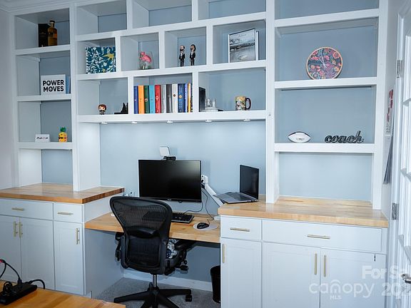Wonderful property and home with various possibilities! A few things that make this property special: Finished, walk-out basement w/FULL bathroom, FULL kitchen, large storage room, AND it's own washer & dryer. Previously used as a large studio apartment/2nd living quarters, great for long- or short-term guests, lots of guests, multi-generational living, food-based hobbies, and so much more... Office on main level with French doors for privacy, custom cabinets, wall-to-wall shelving, a built-in desk with cord management, space for another desk or comfortable seating, windows at the front of the home make sure you don't miss any package deliveries while working, perfect for working from home full- or part-time... Custom built drop zone... Large kitchen with plenty of cabinet storage, large island with eating area, stainless steel appliances including a quiet dishwasher... Beautiful, bright morning light shines in the primary bedroom & bathroom, breakfast room, kitchen, and living room... Fenced backyard backs up to woods and Rocky River with views of trees, songs of birds, and sounds of the river. Future construction at rear of property is extremely unlikely... Awesome deck accessible from the main floor with composite planks and stairs to lower patio and backyard... Large primary bedroom and bathroom with extra space for a seating area, treadmill/clothing rack or dressing area, TWO walk-in closets, double sinks, large tub, and private WC... Upstairs guest bath has double sinks, a linen closet and walk-in shower... Use the upstairs loft as flex space: play room, craft room, workout space, game room, etc... Carpets replaced in 2024 with a lot of extra carpet and padding to convey... Two refrigerators, plus basement washer and dryer to convey... The neighborhood is welcoming, active, and inclusive with many trick-or-treaters on Halloween, impressive holiday light displays and several seasonal events hosted at the clubhouse... The pool has multiple areas for all ages, shore entry with mushroom fountain, waterslide, and 4' - 6' depth lap pool. The pool, clubhouse, playground, fitness center, and volleyball court are a 10 minute walk away... Patriots STEM Elementary School is a 20 minute walk/5 minute bike ride and C.C. Griffin is a 25 minute walk/5 minute bike ride away (times derived from Google Maps)... The current bus stop for elementary, middle and high school students attending the assigned public schools is about 3 houses away and visible from the front door... Traffic is limited due to the property's location far off the neighborhood's main road. Two nearby cul-de-sacs and slight road elevation makes it a great area for learning and riding bikes... The gas station and convenience store at the entry of the neighborhood is super handy with clean restrooms, a car wash, vacuums, and EV charging stations. Future plans for the community include retail space opposite the gas station... Easy and quick access to hiking trails at Hector H. Henry Greenway, a 2.67-mile section of the greenway with gravel and dirt trails, uneven and rocky in some places, areas of significant elevation, great woodland views of flora and fauna, unique view points of the river, and ruins of a former roadway bridge.