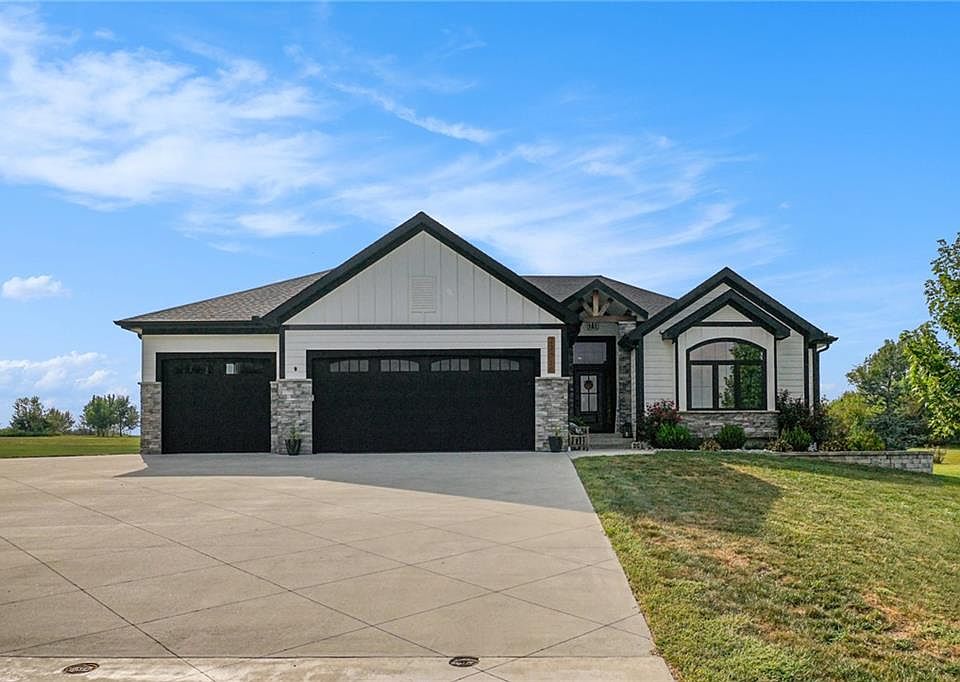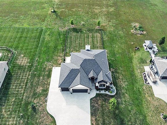 Beautiful 5-bedroom, 4.5-bath reverse 1.5-story home in the popular Shadow Glen of Peculiar. Sitting on 1 acre & backing to open farmland, this tastefully modern home, framed in 2x6 construction, features a fenced portion perfect for kids, pets, or a pool. The oversized 3-car garage with high ceilings includes a tandem bay for storage, a workshop, or even a golf simulator, plus a 40+ ft pad with a 50-amp connection for an RV or trailer.
