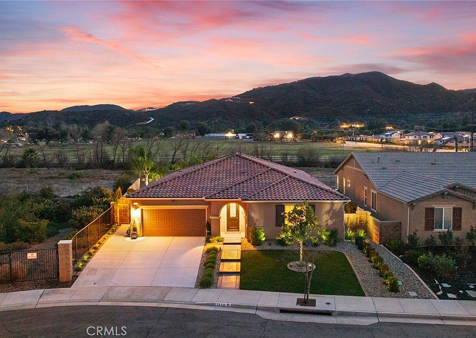 Step inside to discover an open-concept layout with extra wide entry, tall ceilings and an abundance of natural light pouring in through large windows, offering stunning mountain views. Just off to the right of the entry, there are two bedrooms connected (jack n jill style) with a full bathroom. Further down the entry hall you will find the Office/3rd bedroom. At the back of the home you will find the remodeled, gorgeous chef's kitchen, Featuring elite KitchenAid appliances, a massive island with seating for six, and ample storage and fully open to the formal dining room and oversized great room.