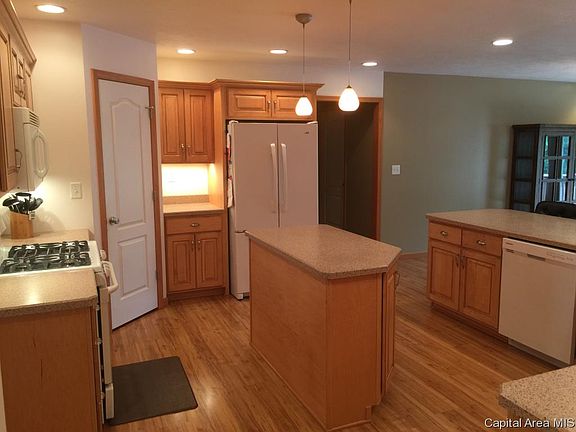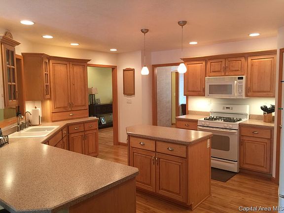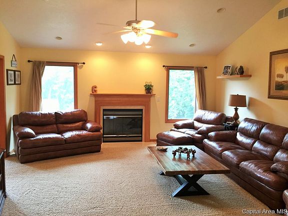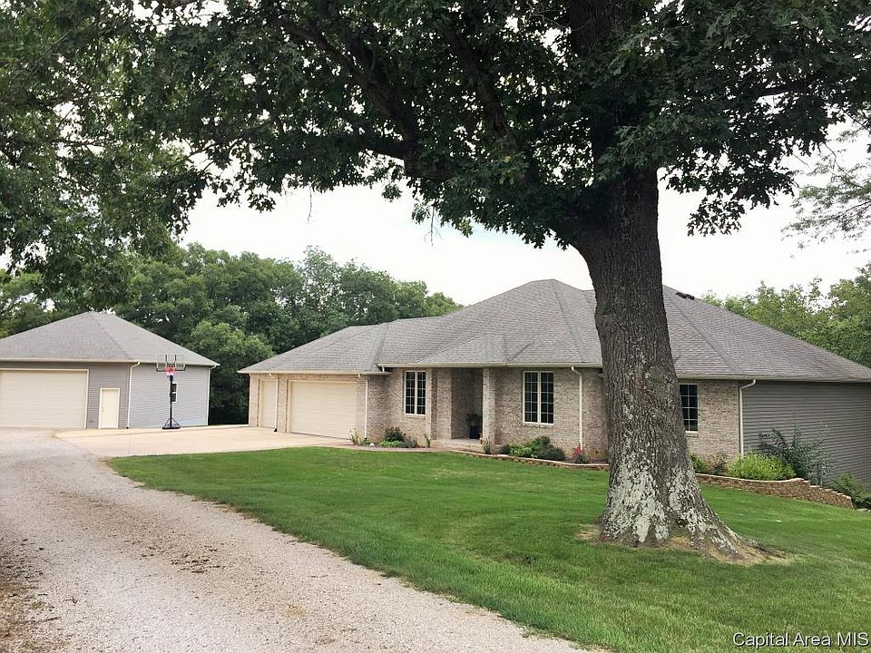 STUNNING 4 bed/ 3.5 ba Custom Built Ranch w Walk-out nestled in the timber of Hickory Hills Subdivision! Almost 4000 sq ft of move in ready space PLUS a detached 30 x 40 garage for storage, cars, shop~ MAN CAVE! Beautiful Kit centers home & offers island, brkfst bar, custom cabinetry, walk in pantry, eat Area overlooking deck & scenery! Fam Rm has Vaulted ceilings & WOW FP. LG Master w/walk closet, Jacuzzi tub, double sinks! Fam & Rec Rm in Lower Level inclds wet bar ready to finish, office & bed rm. Stamped patio, stamped boarder on driveway~ GORGEOUS landscaping!