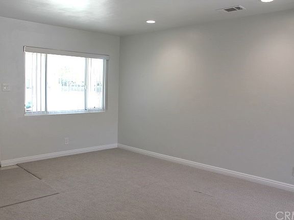 This lovely one story three bedroom home has lots to offer. Spacious living room, 3 bedrooms have been updated with new paint, carpet, baseboards, ceiling fans and floor to ceiling mirrored closet doors. Large kitchen is bright with lots of natural light. Kitchen has eat in dining area and looks out through French Doors to large backyard. Bathroom has tub and shower combo with custom tile work. Dual pane windows. Automatic sprinklers front and back.