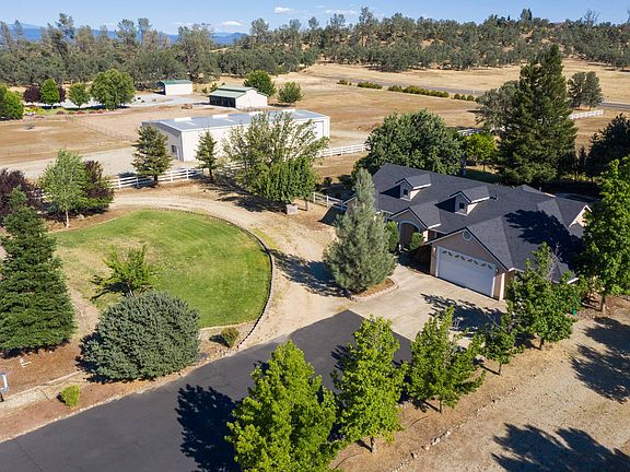 ULTIMATE SETUP IN PALO CEDRO. Sitting on 5 acres you will find this beautiful 4 bedroom 2 bath home with a sparkling gunite pool and a HUGE 5,000 sqft metal shop. The home features an open and split bedroom concept with vaulted ceilings, gas fireplace, ceiling fans, quartz counter tops, a 3 car garage and a spacious owners suite and bath with large walk-in closet along with French doors that open to the pool and your backyard oasis. The entire property is fully fenced and landscaped. The shop features two roll-up bays and 3 separate office/storage rooms. There is a separate driveway to the shop with it's own fencing as well. Definitely a must see!