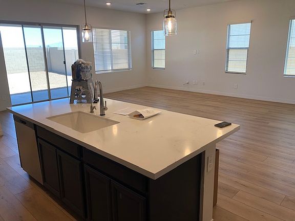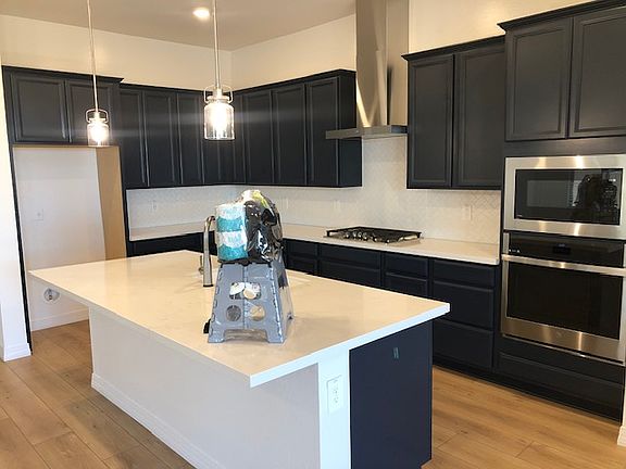 Beautiful single story home featuring a gourmet kitchen with stainless steel appliances (including refrigerator), Quartz kitchen countertops, Navy Blue cabinets throughout, designer selected kitchen backsplash, large island, frameless walk-in shower at primary bath plus deep soaking tub with custom tile surround, Stainless faucets and plumbing fixtures at all baths, luxury vinyl plank flooring throughout, exterior door to patio at primary suite, huge extended paver patio, lush green lawn, fruit trees, overhead storage in 2.5 tandem garage, tankless water heater, community pool (100 yards away) with many parks, pickleball, basket ball court, greenbelts and walking paths and much more!