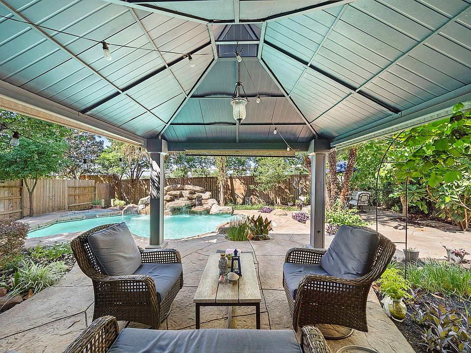 Located in a master-planned community, this well-maintained home offers a private backyard oasis with a stunning heated gunite pool, fountain, and hot tub—all surrounded by mature trees and no rear neighbors. Enjoy outdoor living under the spacious covered patio. Inside, the home features high ceilings, abundant natural light, elegant arched niches, and a beautiful staircase. The kitchen boasts Quartzite countertops, gas cooking, and generous cabinet space, flowing into the bright living area with a gaslog fireplace. The primary bedroom is conveniently located on the first floor, while upstairs offers a large gameroom and additional bedrooms. Other highlights include formal dining, excellent schools, and two brand-new AC units (installed 12 months ago). The roof is under 10 years old, and the home has never flooded. HAS TESLA CHARGING STATION. Situated in an established neighborhood just minutes from top shopping and dining.