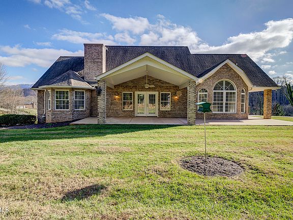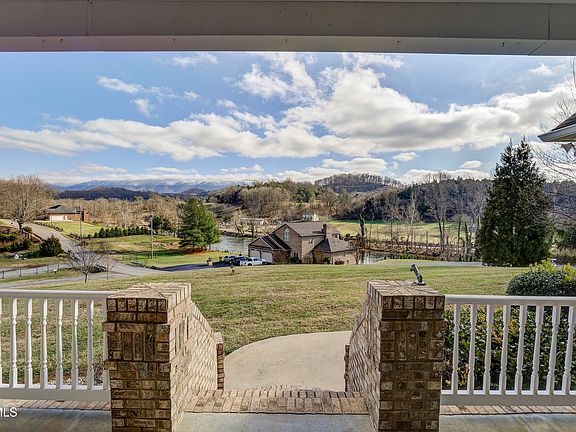 Discover the perfect blend of privacy, space, and East Tennessee charm with this beautiful brick home, nestled on 2.15 scenic acres. The home sits directly across the road from Holston River with amazing views of Holston Mountain from your rocking chair covered front porch. Offering around 3900 sq ft of well-designed finished living space, and around 2000 sq ft. of unfinished living space which includes a 4 to 5 car garage. This 4-bedroom, 3.5-bath home welcomes you with a spacious main level that includes a great room with tall ceilings, corner fireplace, French doors that open to a covered patio area, formal dining room, a sunny breakfast nook, a home office /library and a kitchen loaded with cabinet space—as well as a mud room/laundry room, perfect for both daily living and entertaining. The main-level master bedroom features a large walk-in closet and amazing private ensuite bath with shower and whirlpool tub creating a true retreat. Upstairs overlooks the great room and you'll find a massive flex room ideal for a media room, playroom, or game room along with 2 additional bedrooms and a full bath—perfect for guests or children. The lower-level basement area offers a fully equipped kitchen with a bar area, great room/bedroom, full bath with a roomy shower and additional closets and storage. This opens up to a walkout 3-car garage with garage door access and is ready for your workshop, storage needs, or future expansion. All this, tucked in a private setting with ample outdoor space to relax or entertain.