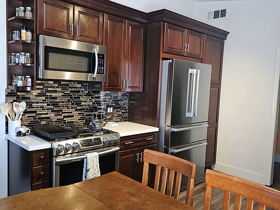 Across Nestor Language Academy Charter School. Renters are responsible for all bills including 140 solar panels and 55 for garbage. Garage is converted into a Studio and rented separately. There is a credit for bills because of the Studio. There is parking in driveway and in the street in front of the house. There is a 10 x 12 room in the backyard that can be used as an extra room, office or storage.