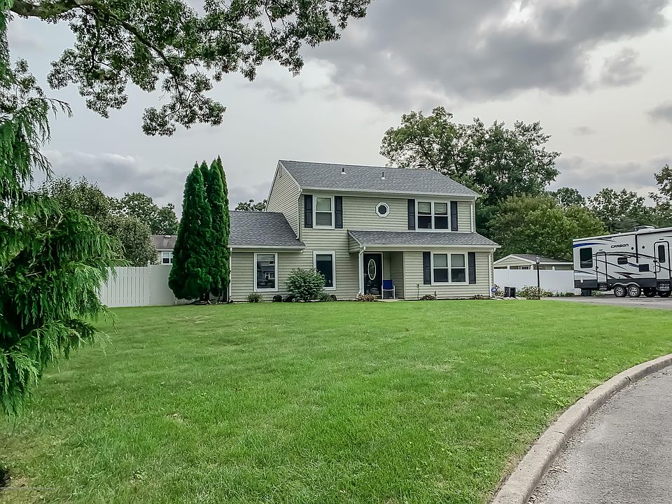 Outdoor Living at its Finest!Matured landscaping make this a park like setting. Enjoy year round use of a Covered Patio almost the length of the house with Casablanca Fans and string lighting. A very warm home feeling with 2 Gas Fireplaces,Brazilian hard wood floors ,Oak Kitchen,large Pantry, Build in Bar,convenient Laundry room,Four Bedrooms up-stairs and an office/bedroom down.1/2 Bath off kitchen.Property has a very large paved driveway with 2 garage size storage buildings.Vinyl stockade fence surrounds this private yard-Don't MISS this BEAUTIFUL CUL-DE-SAC LOCATION!