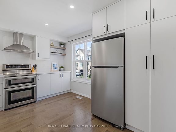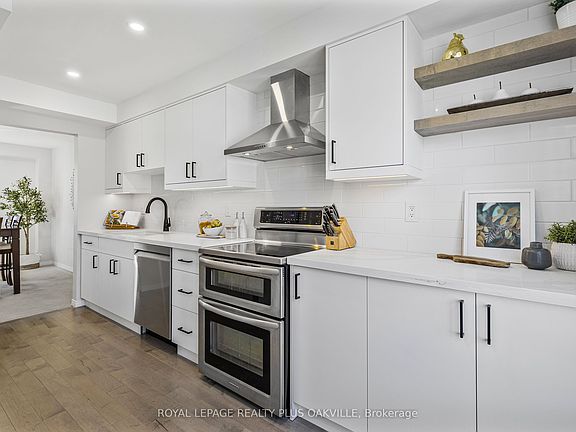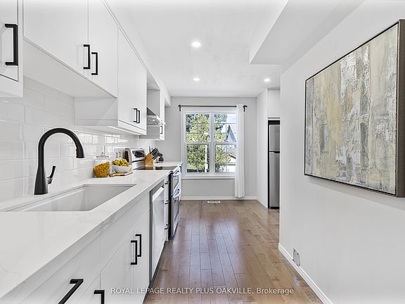 Incredible Value!!! Just renovated & move in ready Stunning 3-Bedroom Townhome in a family-friendly enclave of River Oaks. This beautifully renovated 3-bedroom condo townhome is tucked away in one of the best locations in the complex backing directly onto wooded trails and 16-Mile Creeks endless walking and biking paths. Inside, youll find top-to-bottom renovations (2025) Light-filled kitchen boasting white cabinetry, sleek quartz countertops, stainless steel appliances, classic subway tile backsplash, and brand-new hardwood flooring. The open concept living and dining area features smooth ceilings, LED pot lights, and large windows that flood the space with natural light the modern, updated powder room completes the main floor.Upstairs, retreat to a spacious primary bedroom with custom closet organizers, plus two additional bedrooms and a brand-new 4-piece bathroom (2025) perfect for families.Downstairs, enjoy a fully finished lower level with a cozy family room, walkout to a private patio, and direct access to the trails. This level also includes a renovated laundry room, mudroom bench, LED lighting, smooth ceilings, and inside access to the garage blending comfort and convenience.Freshly painted throughout and part of a meticulously maintained, child-friendly complex with mature trees, manicured gardens, and condo fees that include roof, windows, and doors offering incredible long-term value. Unbeatable location: Top-rated schools, parks with splash pads, River Oaks Rec Centre, Oakville Trafalgar Hospital, shopping, and major highways are all just minutes away.This home checks all the boxes and then some. Immediate possession available just unpack and start living the River Oaks lifestyle. Whether you're upsizing, downsizing, or buying your first home, dont wait. Schedule your private showing.