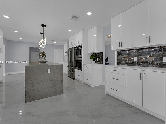 This stunning completely remodeled 4-bedrooms, 3 full bathrooms and large corner lot home, offers style, functionality and luxury details. The kitchen boasts custom quartz countertops, a waterfall island and high-end stainless steel BOSCH appliances. The home features a family room and more than one dining space, a bar area and elegant ravello polished porcelain floors flow throughout the open concept layout. Updates include a new roof, upgraded electrical, underground PVC plumbing system. Enjoy the heated pool, relax in your fully fenced yard and lush green space and a comfortable two car garage. Conveniently located in sought after Lighthouse Point, near community parks, tennis courts, private yacht club, and a short drive to the beach and downtown Deerfield Beach and Pompano Beach.