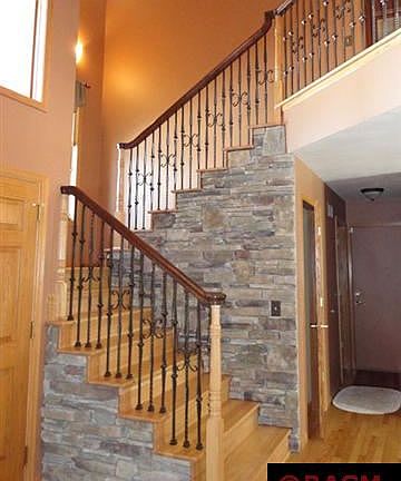 Gorgeous home with upgrades galore and Kasota stone accents sprinkled throughout! The main level of this executive home features vaulted ceilings, a sunken style formal dining room with gas fireplace, an informal dining room, a grand living room complete with a two sided fireplace, built-in display bookcases, and a beamed vaulted ceiling. The kitchen boasts Cambria countertops, stainless steel appliances, hardwood flooring, and has a generous island with breakfast bar area. There is a magnificent Master suite in this home! Located on the upper level, the Master bedroom has hardwood flooring, a private gas fireplace, French doors, a large walk-in closet, and is open to the Master bathroom. The stunning master bathroom is complete with dual sinks, a make-up counter, a dual walk-in shower, a separate stool room, heated floors and a laundry shoot to the main level laundry room. Completing the upper level of this distinguished home are two additional bedrooms and a full bathroom. The basement has been finished to include a rec. room, two more bedrooms and a 3/4 bathroom with dual sinks. You will enjoy a vacation in your own backyard with this property! As you step out the patio door, you arrive on the stamped concrete patio which is covered by a pergola, and over-looks your own private in-ground pool! Complimenting the backyard is the pool house, which has been finished as a nice place to relax out of the sun, and a private hot tub area completes the backyard. The property has an in-ground sprinkler system, and the triple attached garage has been completely finished right down to the epoxy floor. Truly an impressive property.