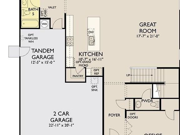 Covered patioStylish flooringSpacious loftLarge center islandPrivate downstairs officeCloud-colored cabinetryLuxurious freestanding tub