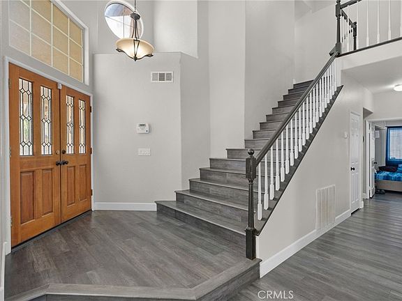 Welcome to your dream home in the Hidden Springs community of Moreno Valley! NO HOA. 22720 Shadowridge Lane, Moreno Valley CA 92557 is conveniently located North of the 60 Freeway. This immaculate 2-story residence boasts 4 spacious bedrooms total with 3 upstairs and 1 downstairs, and YES one Full bathroom downstairs as well. Plus a 3-car garage for extra Driveway space and/or storage access. The master suite is a true retreat, featuring a private fireplace and a balcony for serene relaxation. Step outside to enjoy a beautifully replastered pool with a Mini Pebble finish, perfect for summer gatherings. Inside, you'll find modern comforts including a new AC & heating system, new vinyl flooring throughout, and a new water heater. The updated kitchen shines with brand-new white kitchen cabinets, stainless steel appliances, double oven and granite countertops. Additional features include a new electrical panel which is ready for solar, and fireplaces in both the living room and master bedroom. Situated near elementary/ middle/ and high schools, parks, hiking and horse trails, and shopping. This turnkey home offers both convenience and luxury. Don’t miss this exceptional opportunity to call this house your HOME. View it before it is gone.